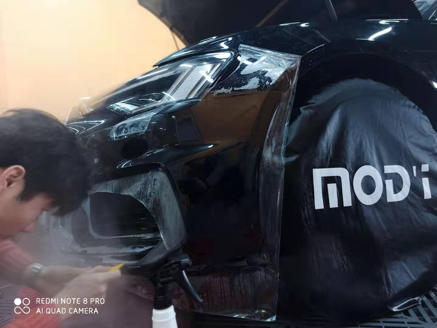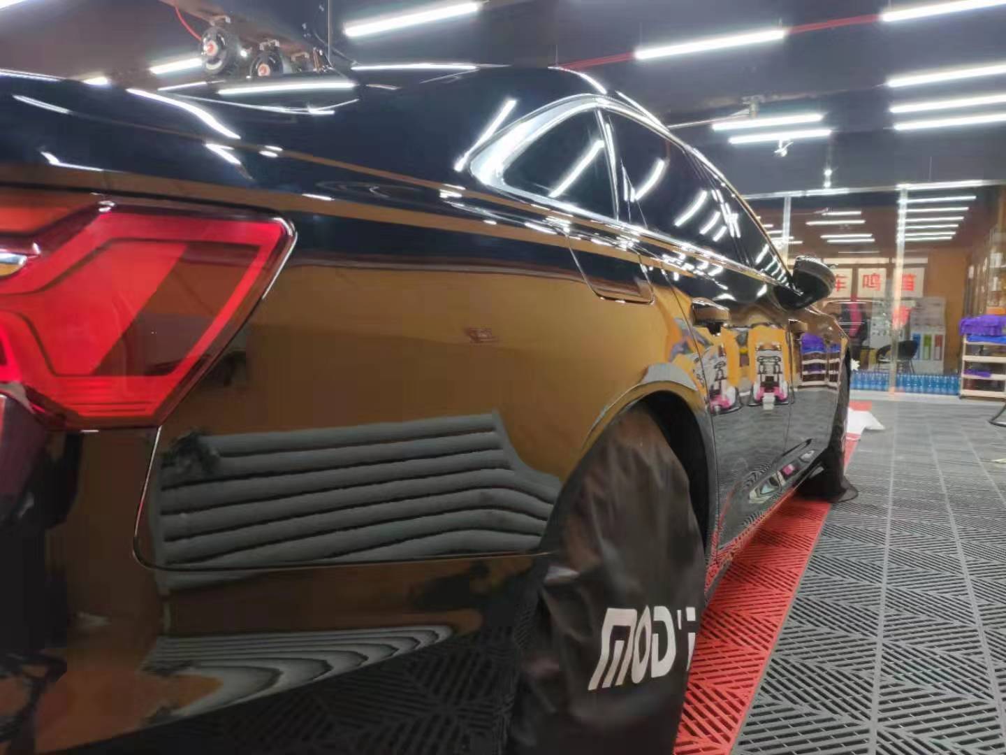 施工时间需要两天,看看奥迪A6L贴完魔逸MOD'i M2隐形车衣后的变化。